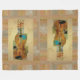 Gerahmt durch Blöcke der Farbe mit einem hölzernen Korneffekt, der durch darstellt, wird das Bild einer Violine - zusammen verwirrt von den Stücken der verschiedenen aufgereihten Instrumente - zweimal angezeigt, damit es von zwei gegenüberliegenden Winkeln gesehen wird, egal wie diese weiche Decke drapiert wird. Bringt viele Einzelteile im gleichen Speicher zusammen.