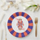 Set von acht 9 Zoll Papier-Teller mit einem Bild einer Königin der Herzen Spielkarte gerahmt mit einem orangen und lila Sonnenbrand. Sehen Sie sich die passenden Sandstein- und Papier-Untersetzer an. Sehen Sie sich die gesamte Wonderland Plättchensammlung im NAHRUNGSMITTEL/BEV an.| Geschirr