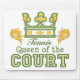 Eine königliche Krone mit Schnörkel im Grün und Gold mit dem Wörter Tennis und Königin des Gerichtes unter es auf Tennisspieler-T - Shirts, T-Shirts, Kleid, Kleidung, Briefpapier und mehr Geschenke für einen Tennistrainer, Tennismamma oder Tennisspieler. Studios, LLC.