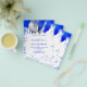 Bitte beachten Sie, dass diese Einladung auf Flyer Papier und sehr dünn ist. Umschläge sind nicht enthalten. Für dickere Einladungen (gleiche Gestaltung) besuchen Sie bitte unseren Shop. Ein weißer Hintergrund. Dekoriert mit königsblauen Imitaten Glitzer Tropfen malen tropfende Aussehen, Glitzern. Königlich blaue und Imitate silberne Ballons. Personalisieren und fügen Sie einen Namen und Party-Details hinzu. Der Name wird mit einem handgeschriebenen Stilskript geschrieben.
