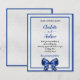 Eine moderne, elegante und hochzeitliche Einladung. Imitate silbermetallischer Hintergrund mit königsblauen Rahmen und Bogen. Personalisieren und fügen Sie Ihre Namen und Hochzeitsdetails. Schwarz-Königsblau-Buchstaben.