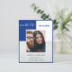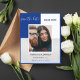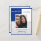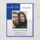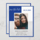 Eine moderne Hochzeit Save the Date Foto Karte. Königlich blaue, weiße und silberfarbene Imitat in metallischer Form. Personalisieren Sie Ihre Foto- und Hochzeitsdetails und fügen Sie diese hinzu.