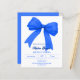 Weiß, mit einem großen königsblauen Bogen dekoriert. Personalisieren und fügen Sie einen Namen und Party-Details hinzu. 1 Blatt = 1 Einladung mit Druckkante bis Kante.