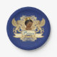 Königlicher afrikanischer Baby-Duschen-Teller Prinz-Elegant mit entzückendem afrikanischem tragendem Prinzen, eine Goldkrone auf dem Wappen eines eleganten goldenen Löwes mit einem Hintergrund des königlichen Blaus.