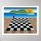 Genießen Sie dieses surreale grafische Design eines Königs, eines Schachbrettes und eines Inselkönigs am Horizont.