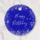 Für eine mädchenhafte und glamouröse Geburtstagsparty (oder jedes Alter). Ein königsblauer Hintergrund mit eleganten Imitaten silberner Staub. Auf der Vorderseite der Text: Happy Birthday Back: Ihre Notiz und Ihr Name(e) Verwenden Sie einen generischen Text, damit Sie ihn für mehrere Geburtstage verwenden können