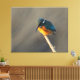 Ein Königsfischer saß über einem Teich gewartet, schön auf einer gestreckten Leinwand dargestellt.