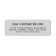 Ihr Name und Ihre Adresse sind leicht personalisiert... in einem einfachen und schlichten hellgrauen Etikett mit schwarzem Schriftart geschriebenem Text