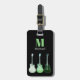 Modernes elektrisches Gitarrenmonogramm mit Kontaktdetails Reise-Tag. Handgezeichnete E-Gitarren-Illustrationen im Stil der grünen Pop-Kunst in durchsichtigen Weiß- und Grün-Tönen Wiederholmuster auf einem schwarzen Hintergrund. Das perfekte Design für den coolen Rockstar in Ihrem Leben kann personalisiert werden, indem Sie einen Namen und ein Monogramm Initial auf der Vorderseite und Kontaktdetails auf der Rückseite hinzufügen. Ideal für Reisen, wo kreative musikalische Träume geboren sind. Ideal für Musikliebhaber, besonders für Gitarrist und Musiker und Gitarrenlehrer. Original-Kunstwerk von Catherine Sweetman