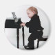 Baby spielt ein Baby Grand Klavier mit tiefer Konzentration.
