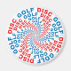 Genießen Sie dieses textbasierte grafische Design der Wörter "Disk Golf", die sich um ein zentrales, kreisförmiges Muster drehen...