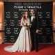Erleben Sie ein echtes "VIP"-Erlebnis auf Ihrer Hochzeitsfeier mit diesem professionellen Step-and-Repeat-Fotohintergrund! Inspiriert von Sponsor-Wänden bei Konzerttourneen und Roten-Teppich-Events, bietet dieser großformatige Fotobooth-Hintergrund ein stilvolles Monogramm und ein Hochzeitsdatum-Muster in Weiß auf Schwarz.