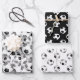 Diese spaßigen Packpapierblätter für Fußballspieler oder Fans haben drei individuelle, sich ergänzende Muster — Blatt 1 zeigt ein 3D-Muster aus schwarzen, grauen und weißen Fußballbällen unterschiedlicher Größe - Blatt 2 hat einfache weiße Fußball-Formen auf individuell einstellbarem schwarz - Blatt 3 hat ein einfaches Spiegelmuster aus schwarzen, grauen und weißen Fußballbällen auf anpassbarem Weiß - von katz_d_zynes