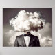 Dieses surreale Kunstwerk zeigt einen Mann, der in einem formalen Anzug mit einer Wolke statt einem Kopf gekleidet ist. Der Hintergrund ist voller Wolken, die eine skurrile und fantasievolle Szene schaffen. Ideal für künstlerisches und kreatives Design.
