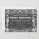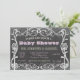 Eine Vintage, Retro-Look Kalkboard Baby Dusche Vorlage mit Zierdesigns und Blume und winzigen Kreise von Glitzer gezeichnet auf das Brett. Design von Amelia Carrie. Weitere Einladungen finden Sie unter GlitterInvitations.com oder zazzle.com/glitterinvitations