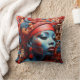 Dieses beeindruckende Kunstwerk ist eine lebendige, surrealistische Darstellung einer Figur, die traditionelle afrikanische Elemente mit fett-futuristischer Ästhetik verbindet. Die zentrale Figur ist eine Frau mit blauer Hautfarbe, die ihr eine fast ätherische oder andere Weltanschauung verleiht. Ihr Ausdruck ist ruhig, mit großen, ausdrucksstarken Augen und vollen Lippen. Ihr Haar ist eine Explosion abstrakter Formen, die farbenfrohen Wolken ähneln und komplizierte Bordüren bilden, was auf Kreativität, Denken oder möglicherweise ein kronenähnliches Symbol für Weisheit und Vorstellungskraft hindeutet. Die lebhaften Farbtöne - von Rosa, Blues, Orangen und Rot - bringen die Komposition zum Leben und rufen ein Gefühl von Energie und Lebendigkeit hervor. Im Hintergrund befindet sich eine abstrakte afrikanische Dorfszene mit modernisierten, aber rustikalen Häusern, die sich mit traumhaften, Bio Formen vermischen. Der Himmel wandelt sich von einem beruhigenden Blau in wärmere Töne um und vermittelt ein Gefühl von Frieden und Dynamik, als ob die Szene zwischen zwei Welten existiert - vielleicht zwischen der realen und der imaginierten, oder der Vergangenheit und der Zukunft. Diese Arbeit scheint die Verschmelzung des afrikanischen Erbes mit einer kühnen Zukunftsvision zu symbolisieren. Das Kopftuch und die Dekorationen der Frau stellen die traditionelle afrikanische Schönheit dar, während die surrealen Farben und Elemente auf den innovativen und fantasievollen Geist zeigen. Das Bild kann als eine Feier der afrikanischen Kultur, Identität und Widerstandskraft gesehen werden, die durch eine Mischung aus Tradition und zukunftsorientierter Kreativität zum Ausdruck kommt.