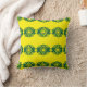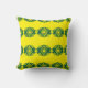 Ein lebendiges, gelbes Kissen mit einem gewagten geometrischen Muster in grün.