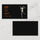 Schwarze Visitenkarte mit meinem Kunstwerk eines Skeletts, der seinen Kopf verlegt.