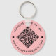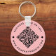Anpassbarer QR Code Schlüsselanhänger mit einem Hintergrund aus Korallenpfirsichfarben. Um einen neuen QR-Code für das Design zu generieren, fügen Sie Ihre Website URL oder Social Media-Handle in der " Personalize this Template"-Funktion ein.