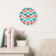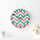 Korallen, Aquamarin, weiße große Zickzack ZigZag M Große Wanduhr