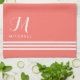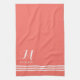 Korallen und Weiße Streifen und Monogramm Geschirrtuch