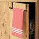 Dieses schlichte, elegante Küchenhandtuch wird Ihrer Küche eine personalisierte Touch des Stils verleihen! Weiße Streifen und Ihre erste in modernen Skripten erscheinen auf einem trendigen, korallen Hintergrund.