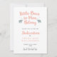 Eine niedliche typografische Einladung für die Widmung Ihres kleinen Mädchens mit einer Linie aus dem beliebten Hymne Jesus Liebe Me. Der Satz "Kleine zu Ihm gehören" ist in Korallenpfirsichpinsel geschrieben, Schriftart, flankiert von zwei grauen Elefanten.
