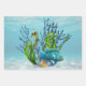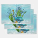Mit diesem Set von drei 19" x 29" halbglänzenden Papierblättern mit einem farbenprächtigen Korallenriff, in dem sich eine wunderschöne blaue Koralle inmitten hellgrüner Algen befindet, ein mit gelben Motiven geschmücktes Seepferd, ein fantastischer blauer Fisch und Muscheln auf dem Meeresboden. Siehe dazu passende quadratische Vorzugsmarke und speziell zugeschnittene Vinyl-Aufkleber. Sehen Sie sich die gesamte Sammlung von Tiefsee-Umschlagpapier in den SPEZIELLEN TOUCHS an. | Abschnitt Gastgeschenke.