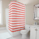 Klassische, horizontale, weiße Streifen mit einem beruhigenden Duschvorhang aus Korallenrosa.