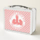 Korallenrote rosa Häschen u. Gingham-Muster Metall Brotdose