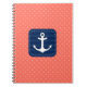 Modischer Seeentwurf der korallenroten Tupfen mit Marineblaufahne in der Mitte mit weißem Anker.