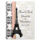 Ein süße und hoch entwickelte Pariser Art französisches themed EIFFEL-TURM-Hochzeits-Gastbuch mit einer Blumengrenze, eine Koralle und ein Pfirsich des Vintagen antiken Schwarzweiss-Damastes druckte Band und goldene hued ausgebogte Grenze und der Eiffel-Turm auf ihm. Diese sind für eine französische themed Hochzeit, ein Verlobungs-Party oder ein Brautparty perfekt. Personifizieren Sie sie mit den Namen der Braut und des Bräutigams und ihres Hochzeitsdatums. Entworfen durch Chrissy H. Studios, LLC. Alle Rechte vorbehalten.
