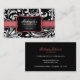 Schöne Salon-Visitenkarten. Schwarzweiss-Blumendamast-Muster mit korallenrotem rosa Band.