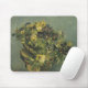 Körbe mit Stiefmütterchen auf einem kleinen Tisch von Vincent van Gogh. Nach dem Umzug nach Paris im Jahr 1886 begann Van Gogh, noch Blume zu malen. Hier zeigt er einen Korb von Stiefmütterchen auf einem Hocker mit einem Sitz in Form eines Tambourins. Der Hocker stammt aus dem Café Le Tambourin, dessen Möbel und andere Einrichtungsgegenstände durch dieses Instrument inspiriert wurden.