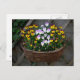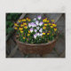 lila und weiß-rosa Violas, schön in einem geflochtenen Holzkorb angeordnet