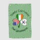 Personalisiertes Golfhandtuch mit einem grünen Kleeblatt, das das Erbe der Republik Korea (Südkorea), der USA und Irlands würdigen soll. Es hat in jedem Blatt eine andere Flagge: die südkoreanische Flagge, die amerikanische Flagge und die irische Flagge. Über dem Kleeblatt sind die Worte DREI KULTUREN. Unten liest es EINEN YOURNAME. Wenn Sie Ihren Namen oder den Namen einer anderen Person an der entsprechenden Stelle hinzufügen, entsteht ein personalisiertes Objekt für Sie oder ein Geschenk für eine andere Person. Feiern Sie den St. Patrick's Day sowie patriotische Feiertage für die USA und die smaragdgrüne Insel. Auch am St. Patrick's Day kann man Golf spielen.