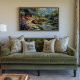 Dieses Bild zeigt eine ruhige und idyllische Gartenlandschaft, reich an lebendigen Farben und faszinierenden Details. Ein traditioneller koreanischer Pavillon mit seinem anmutig abgerundeten Dach und der verzierten Holzstruktur dient als Herzstück. Der Pavillon ist von einem üppig gepflegten Garten umgeben, der mit lebhaften Blume in Rosa, lila, Orange und Weiß übersät ist. Ein Steinweg, flankiert von blühenden Büschen und Sträuchern, führt zum Pavillon. Der Pfad lädt die Zuschauer ein, durch diesen friedlichen Hafen zu wandern. Rechts ein ruhiger Teich mit Lilienblättern und blühenden Seerosen, die das sanfte Licht der Szene widerspiegeln. Die umliegenden Bäume und die weit entfernten Berge bilden den Rahmen des Gartens und verleihen dem Ganzen ein Gefühl der Abgeschiedenheit. Die Stimmung ist insgesamt ruhig und kontemplativ, die sanfte Beleuchtung und das zarte Bürstenmuster sorgen für ein angenehmes Ambiente. Die Verwendung von Ölfarben verleiht dem Blattwerk, dem Wasser und der Architektur eine reiche Textur und schafft so eine harmonische Mischung aus Natur und menschlichem Handwerk. Dieses Gemälde fasziniert wunderbar das Wesen eines traditionellen koreanischen Geheimgartens und bietet einen Einblick in einen ruhigen und malerischen Rückzugsort.