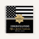 Dieses Design verfügt über eine Offiziersflagge mit schwarz-weißen Streifen und einen dünnen silbernen Streifen. Dieses Design ist ideal, um einem Offizier, der ein Jubiläum feiert, Anerkennung zu zollen oder einem pensionierten Offizier, Leutnants, Wachen, Ratgebern, Administratoren und mehr für ihre Dienstjahre zu danken.