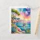 Erleben Sie die ruhige Schönheit der Küste Korsikas mit dieser Aquarellpostkarte mit einem anmutigen Segelboot, das über ruhiges türkisfarbenes Wasser gleitet. Weiche Pinselstriche und sanfte Farbtöne prägen die schroffen Felsen der Insel und die friedliche Meeresatmosphäre, die sich perfekt für die Liebhaber von Wasserszenen und mediterranem Charme eignet.