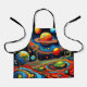 A.I. schuf eine surreale Interpretation aus meiner Beschreibung, die die abstrakte Komposition von Linien, Formen und Farben in einer kosmischen Anordnung darstellt, die die Sinne des Künstlers zufrieden stellte.