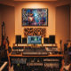 Lebendige E-Gitarren-Kunst umgeben von tanzenden Noten! Abstrakter expressionistischer Stil mit Graffiti und farbenfrohen Spritzern. Perfekt für Musikposter, Albumcover und Studio-Dekoration. Reine Rockenergie und urbane Rhythmik, die jeden Raum mit Leidenschaft verwandelt!