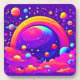 Erleben Sie ein Abenteuer mit diesem dynamischen, kosmischen Kunstwerk. Ein von Sternen und Planeten umgebener, regenbogenfarbener Planet schafft eine faszinierende Szene (Dieses Design aus KI). Bestellen Sie noch heute und Embrace the Joy of Shopping!