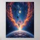 5-Sterne-Poster mit einem einzigartigen Design, genannt Cosmic Portal Es bietet eine farbenfrohe, auffällige, Blick auf den Kosmos durch ein lebendiges Portal, durch zwei Besucher nähern sich das Universum.