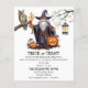 Niedlich Trick oder Treat Invitation für die ganze Familie mit einem Zauberer und einer Vormundbild. Sie können diese Einladung mit Ihren Daten personalisieren.