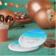 Ein Ruhestandskurs, auf einem Strand- und Meerbild, ist der Hintergrund dieses maßgeschneiderten Party. Blues und Sandfarben. Ihr Name wird einfach in die eigene Platte eingegeben oder ganz entfernt.