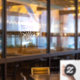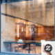 Dieses Café-Fenster klammert sich mit kluger Handschrift, die auf einem klaren Hintergrund "Köstlicher Kaffee verkauft Hier" in Weiß steht. Die Schrift enthält dekorative Wimpern und dekorative Wirbel.