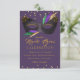 Mardi Gras Party mit Maske in grünen lila und goldenen Federn dekoriert; jeder Text ist für Ihre Veranstaltung editierbar.