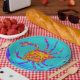 Mit einer Krabbe in einem aquablauen Meer. Dieses Meerestier ist aus meinem Original-Taschentuch, das ich für Meeresfrüchte und Party am Meer anfertige. ©Annabel Potter