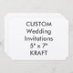 KRAFT 7" x 5" Ticket Shape Wedding Invitations Papier de couleur de la Terre avec une finition de texture lisse et magnifique. Eco-friendly, Kraft est fabriqué dans une usine familiale à 100% d'énergie renouvelable. 30% de contenu post-consommation (recyclé). FABRIQUÉ AUX ÉTATS-UNIS. Carte de 100 livres, carte de 14 points d'épaisseur.