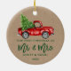 Kraft Modern Green Brush Script Unsere ersten Weihnachten als Mr. und Mrs. - Aquarellfarbener Vintager LKW-Ornament